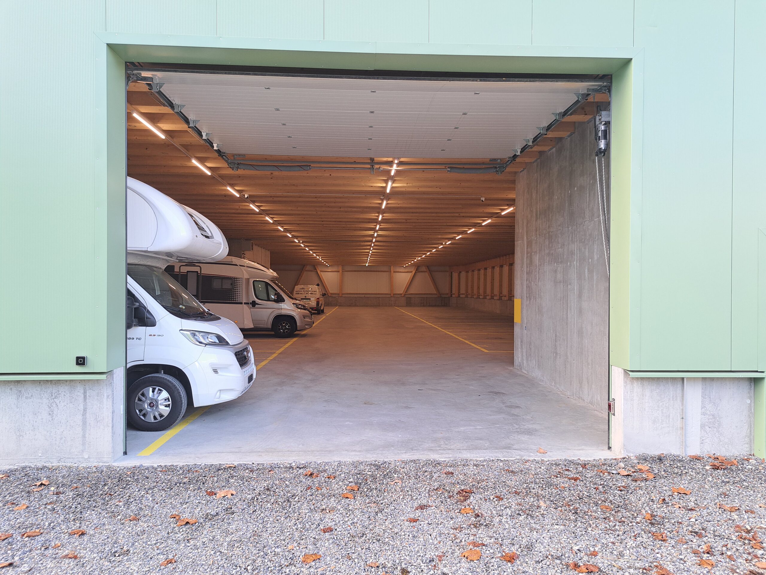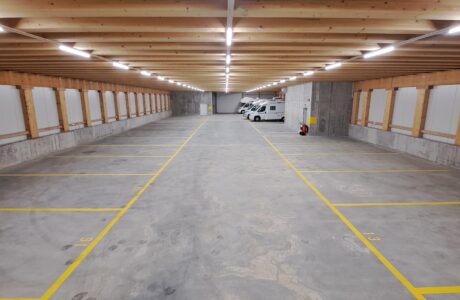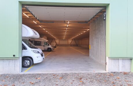 Wir vermieten Einstellplätze in diversen Grössen für Wohnmobile, Wohnwagen, Boote und Anhänger.