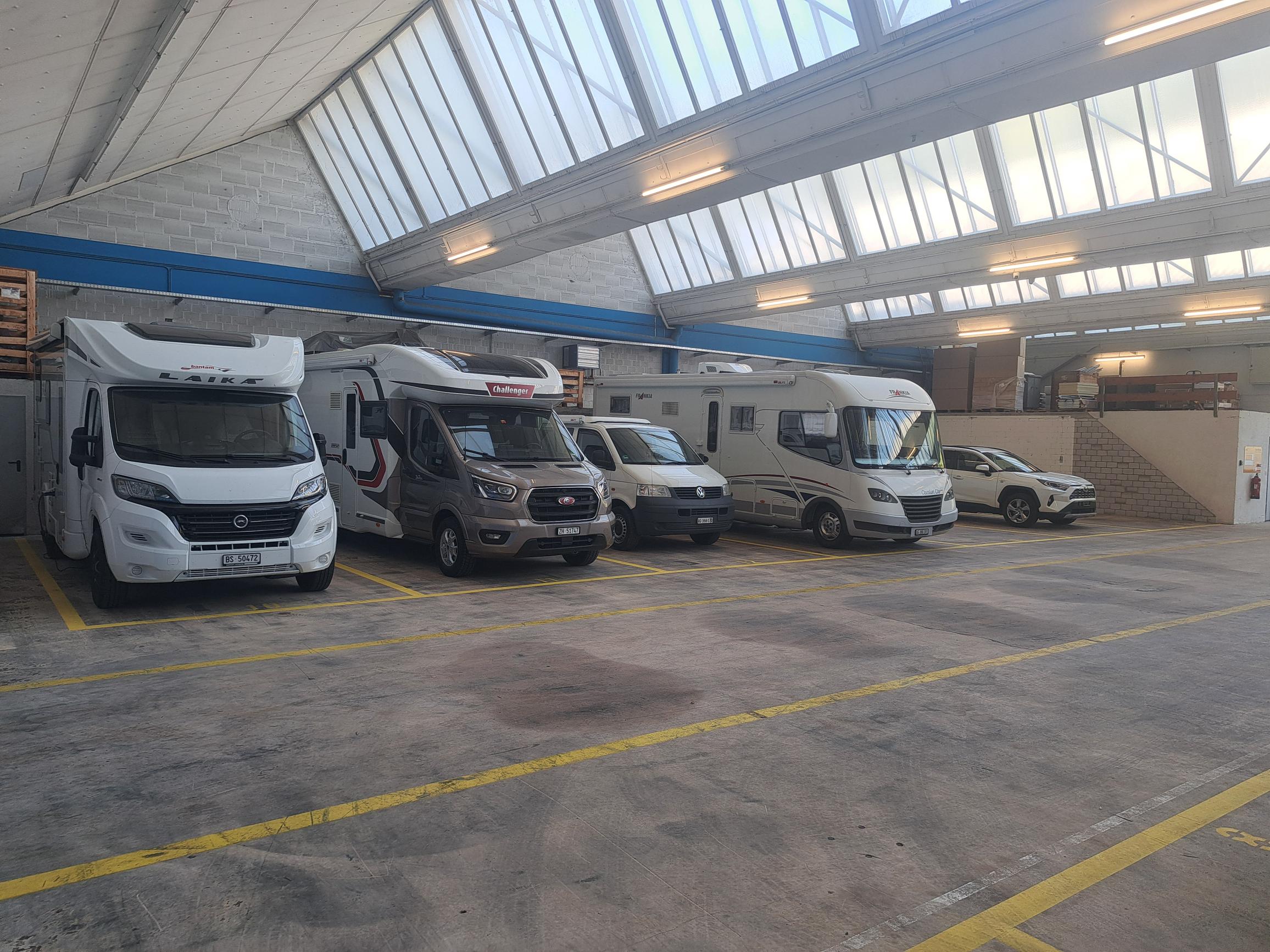 Wir vermieten Einstellplätze in diversen Grössen für Wohnmobile, Wohnwagen, Boote und Anhänger.